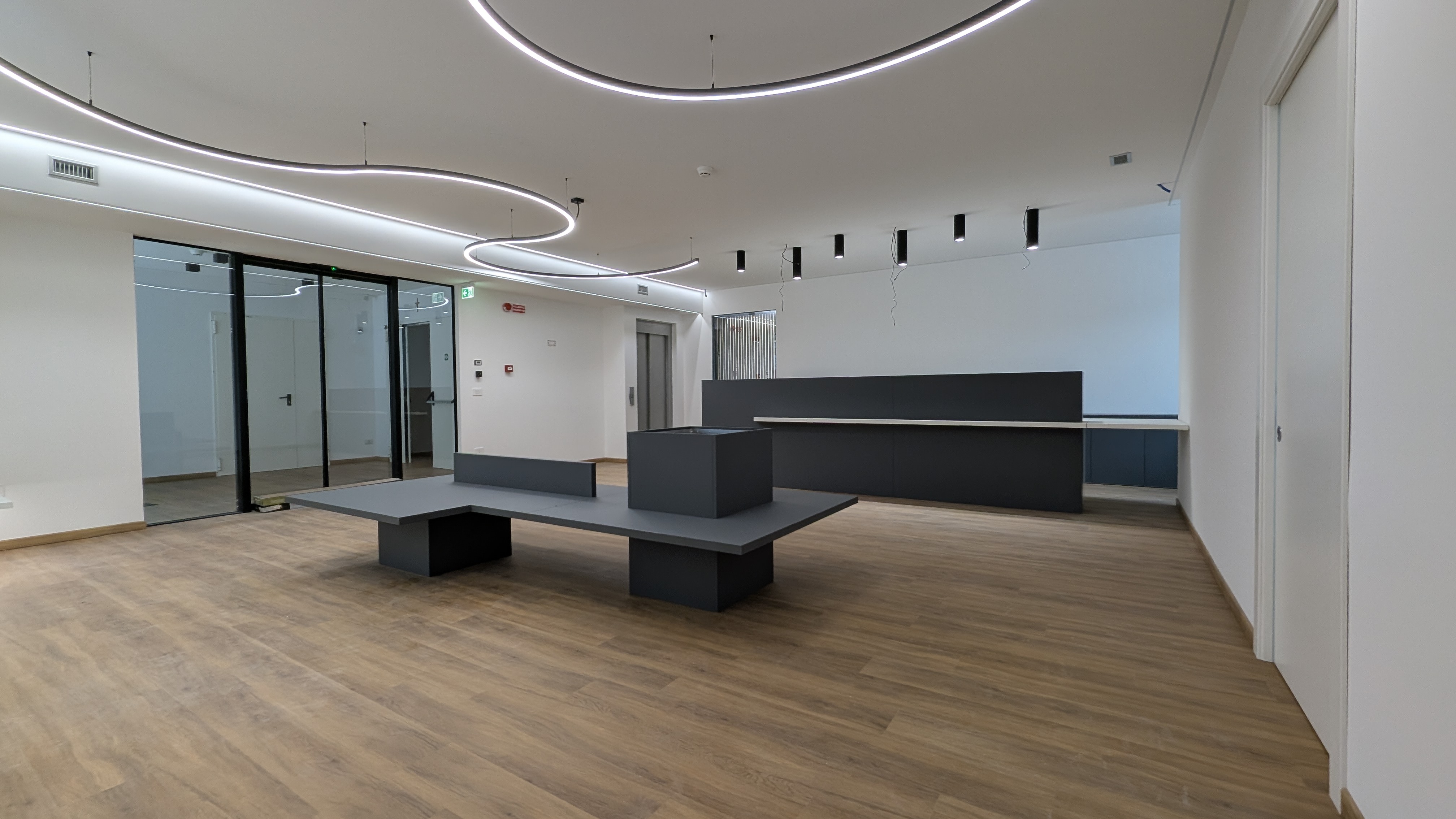 Reception (Desk e mobile base, Sedute Sospese, Seduta isola con fiorieria, Mensola sottolavabo, Mobile Sottolavabo)